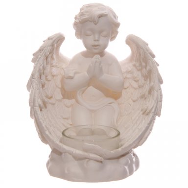 13 x 11 x 11 cm, engel met mooie, sierlijke vleugels, met glaasje voor theelichtje