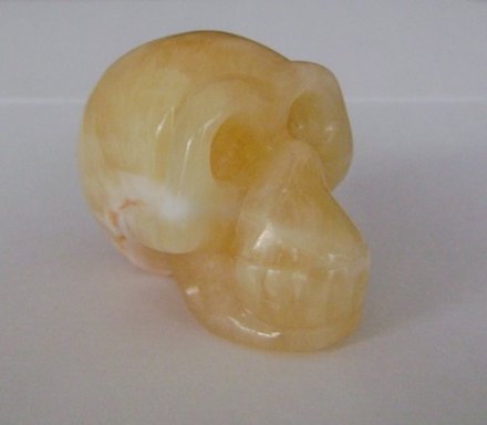 Een gele calciet skull (schedel) combineert de krachtige, zonnige energie van gele calciet met de symboliek van de schedel, die staat voor wijsheid, bewustzijn en bescherming